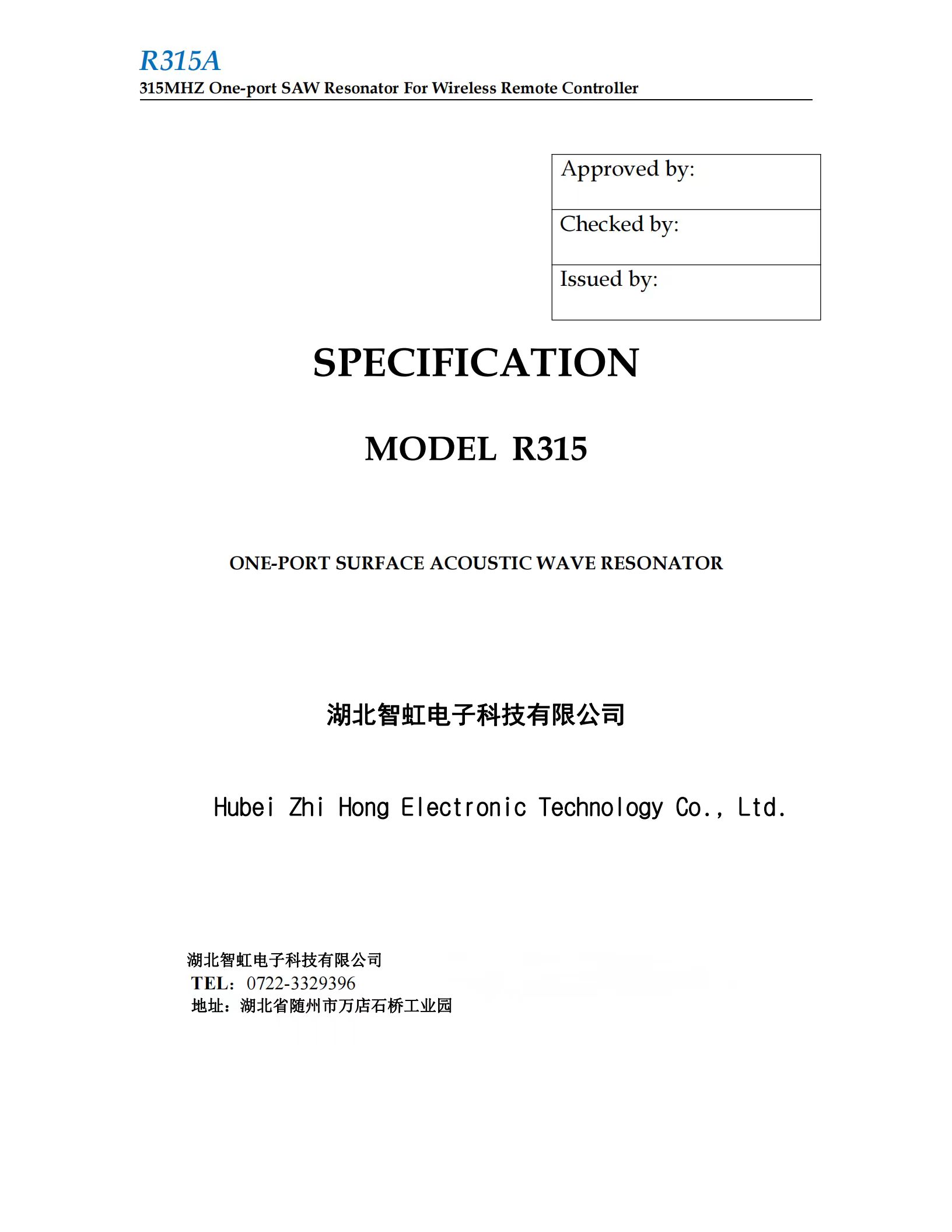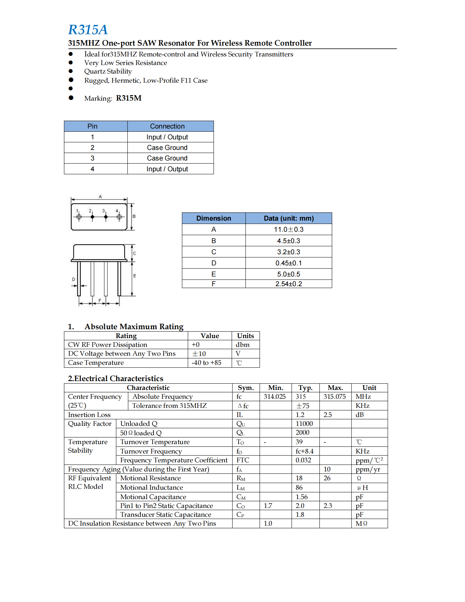 中心频率:315 MHZ